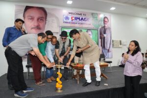 सिमेज कॉलेज, पटना में वॉलीवुड के जाने-माने फिल्म कलाकार विनय पाठक का आगमन हुआ | बिहार के आरा के रहने वाले विनय पाठक ने कई वॉलीवुड मशहूर फिल्मों जैसे रब ने बना दी जोड़ी, माई नेम इज़ खान, खोसला का घोसला, भेजा फ्राई, आइलैंड सिटी, जॉनी गद्दार और जिस्म इत्यादि फिल्मों में अपने अभिनय से लोगों का मनोरंजन किया है और वॉलीवुड में अपना एक मुकाम बनाया है | वे उनकी आने वाली नई फिल्म ‘अब तो भगवान भरोसे’ के प्रमोशन के सिलसिले में सिमेज के छात्रों से मिलने आए थे, जो 13 अक्तूबर को सिनेमाघरों में रिलीज़ होने जा रही है | उनके साथ फिल्म के निदेशक शिलादित्य वोरा तथा असोसिएट प्रोड्यूसर रविराज पाटेल भी मौजूद थे |